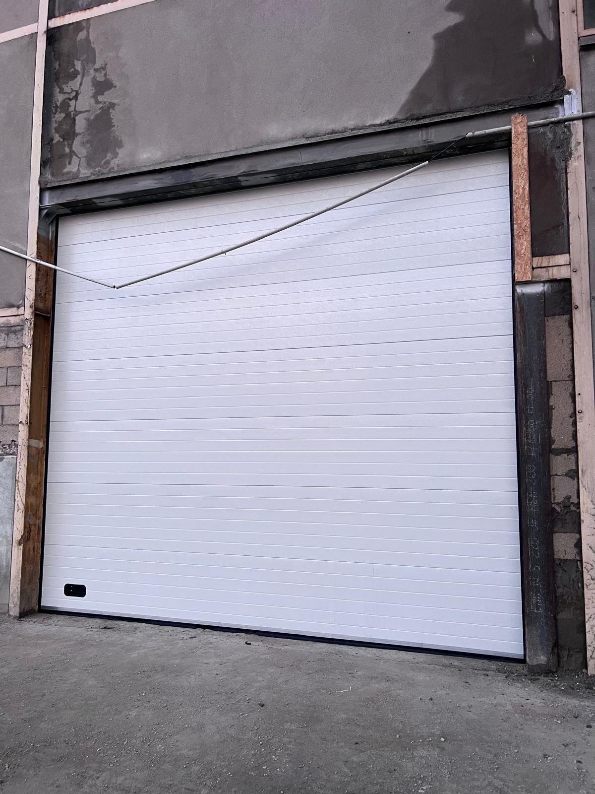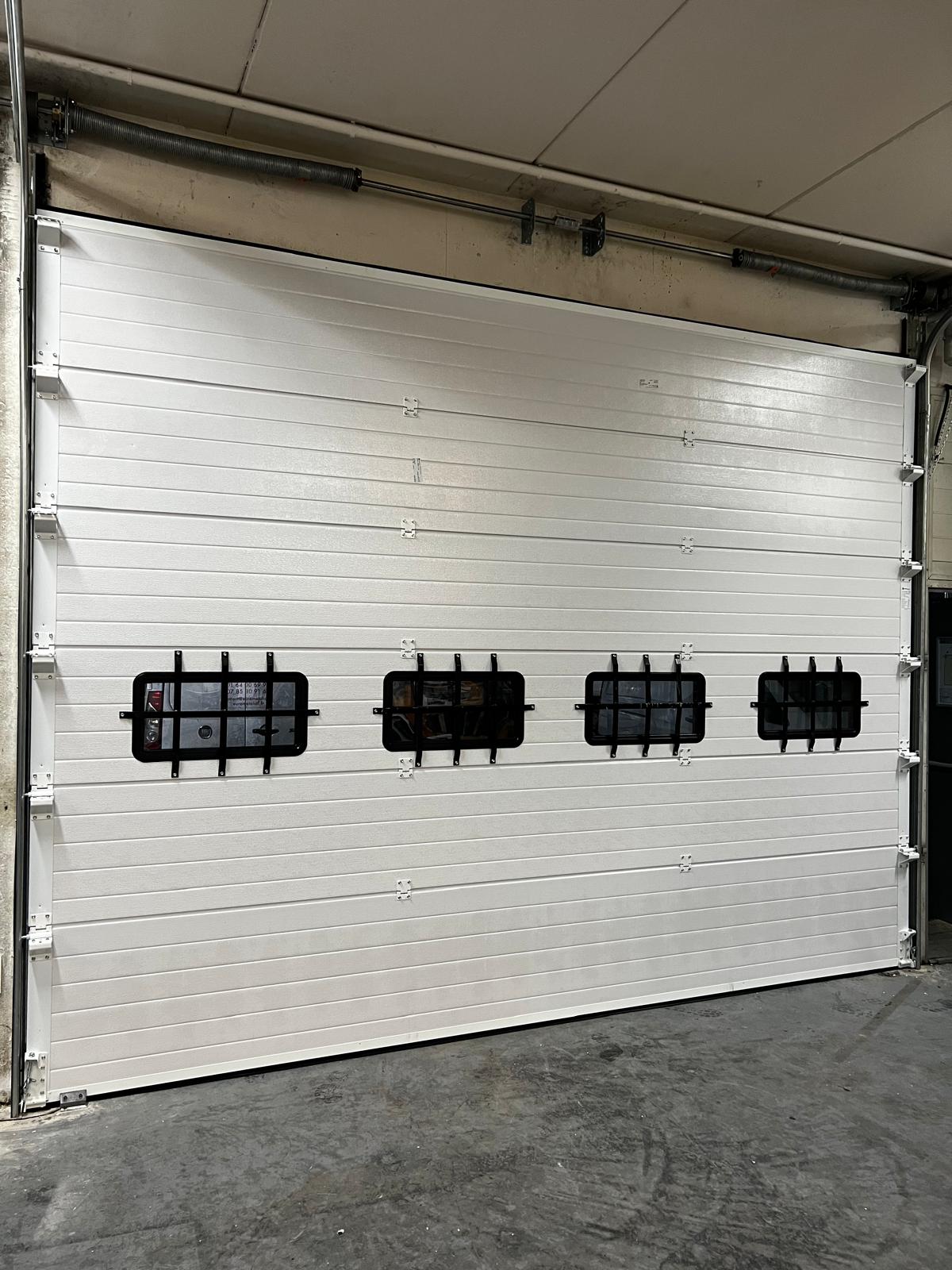 Pose professionnelle de portes sectionnelles pour maisons, garages ou sites industriels avec système de sécurité intégré.